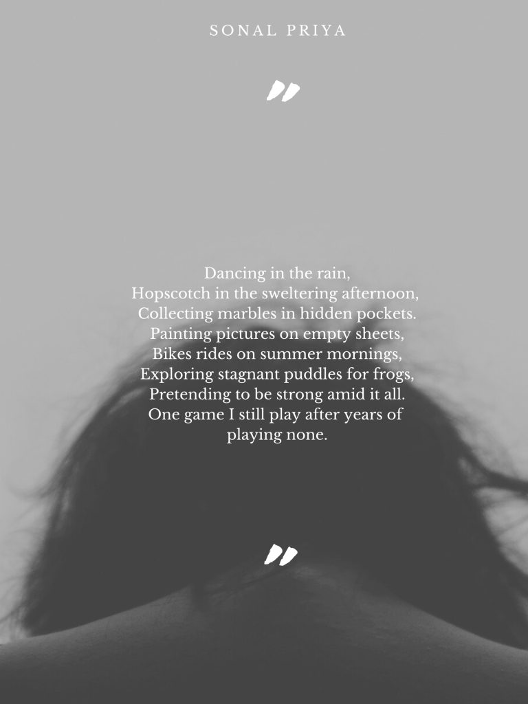 Watching the rain, I am often time-tunneled to my childhood. With monsoons being a big season where I grew up, rain showers will always have that affect on me; I understand that now. So below are a few lines, thinking of those memories.